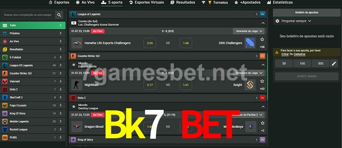 O Bk7 Bet oferece uma grande seleção de opções de apostas em e-sports com probabilidades competitivas